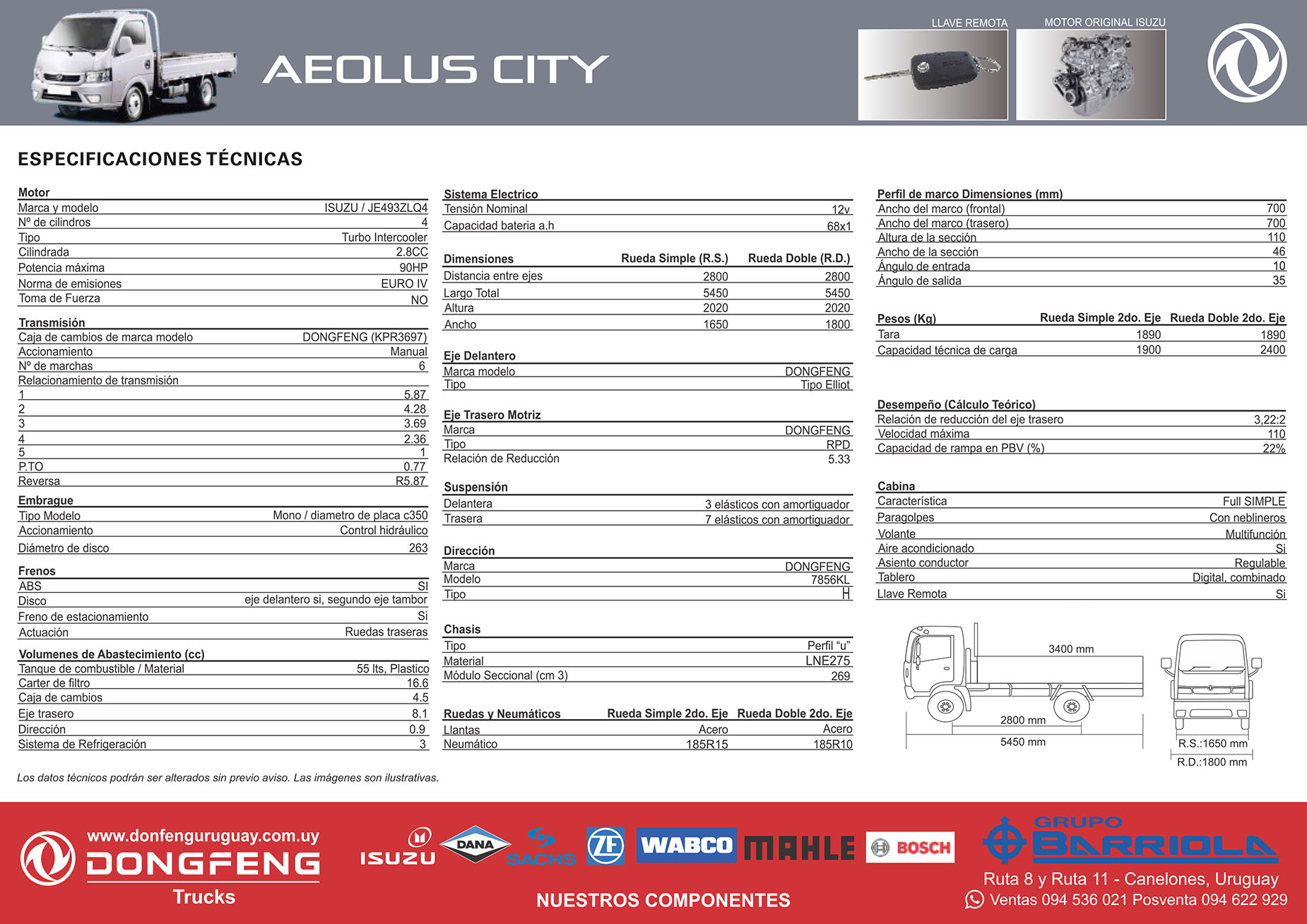 DONGFENG Aeolus City RD - Capacidad de Carga: 1900/2500 kg. Rueda Simple / Rueda Doble