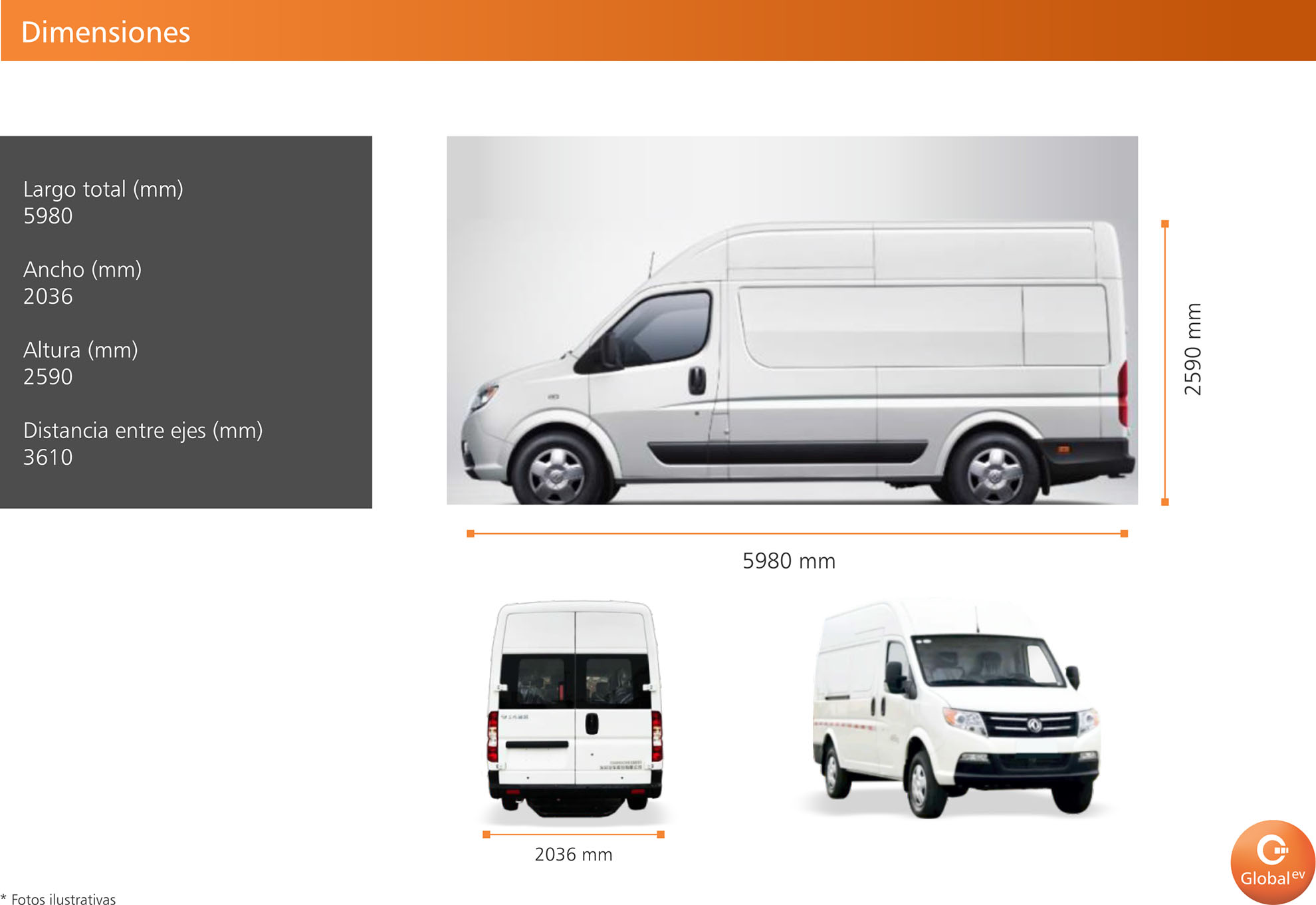 Este vehículo está diseñado para alcanzar una autonomía real de entre 260 km y 330 km con una carga completa y condiciones normales de trabajo.