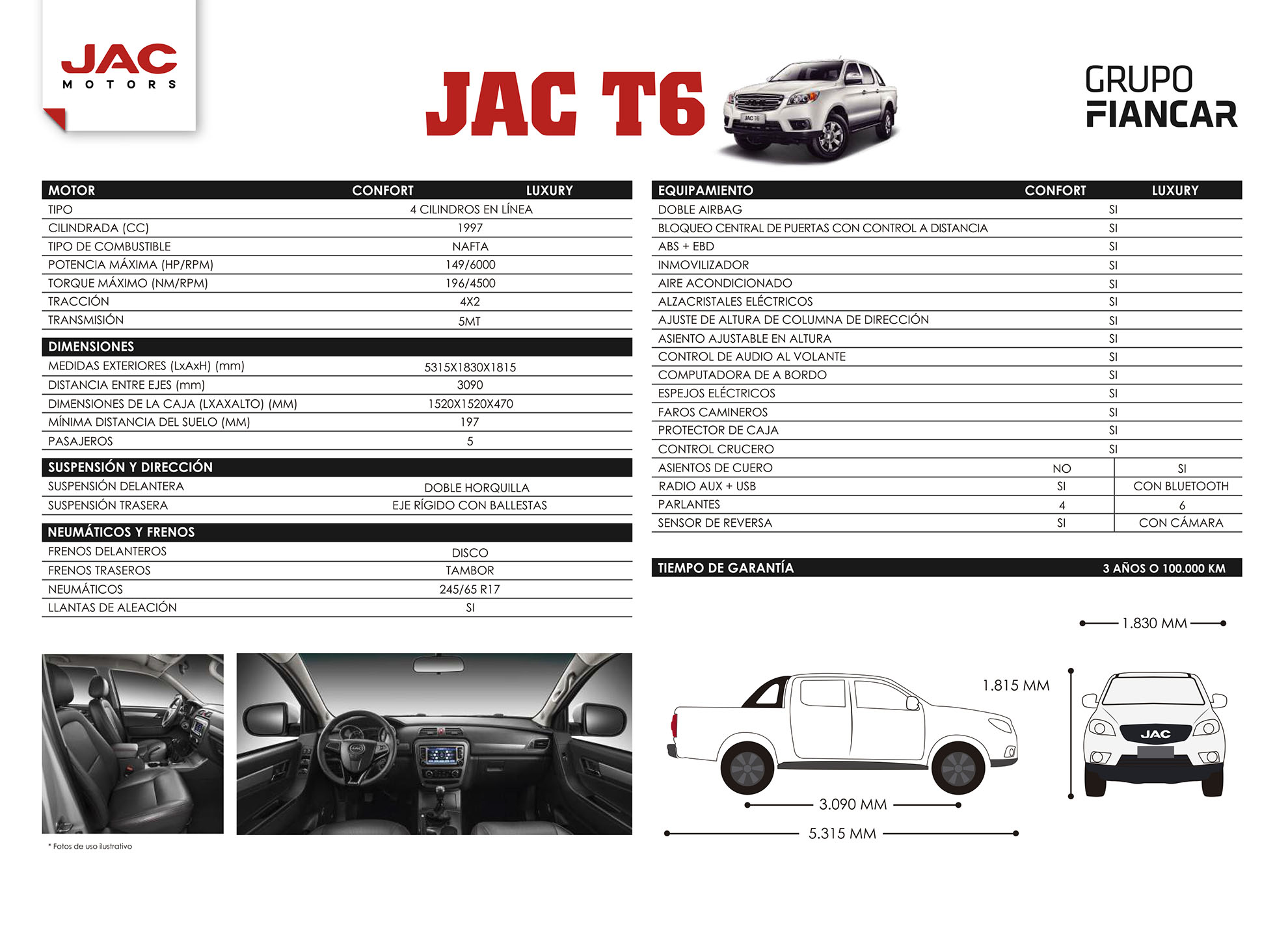 MODELO DEL MOTOR: La Jac T6 cuenta con un Motor Nafta 16V VVT