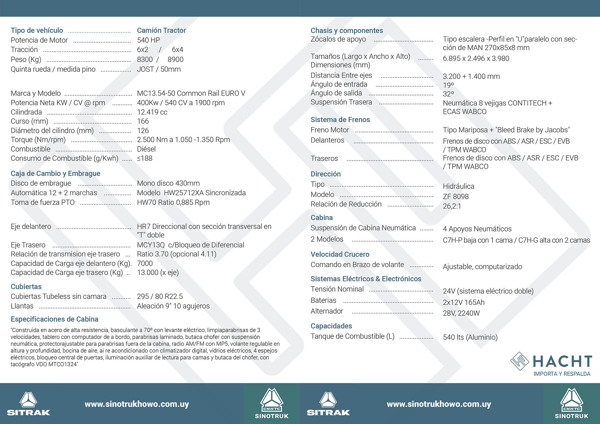Potencia Neta KW / CV @ rpm: 400Kw / 540 CV a 1900 rpm