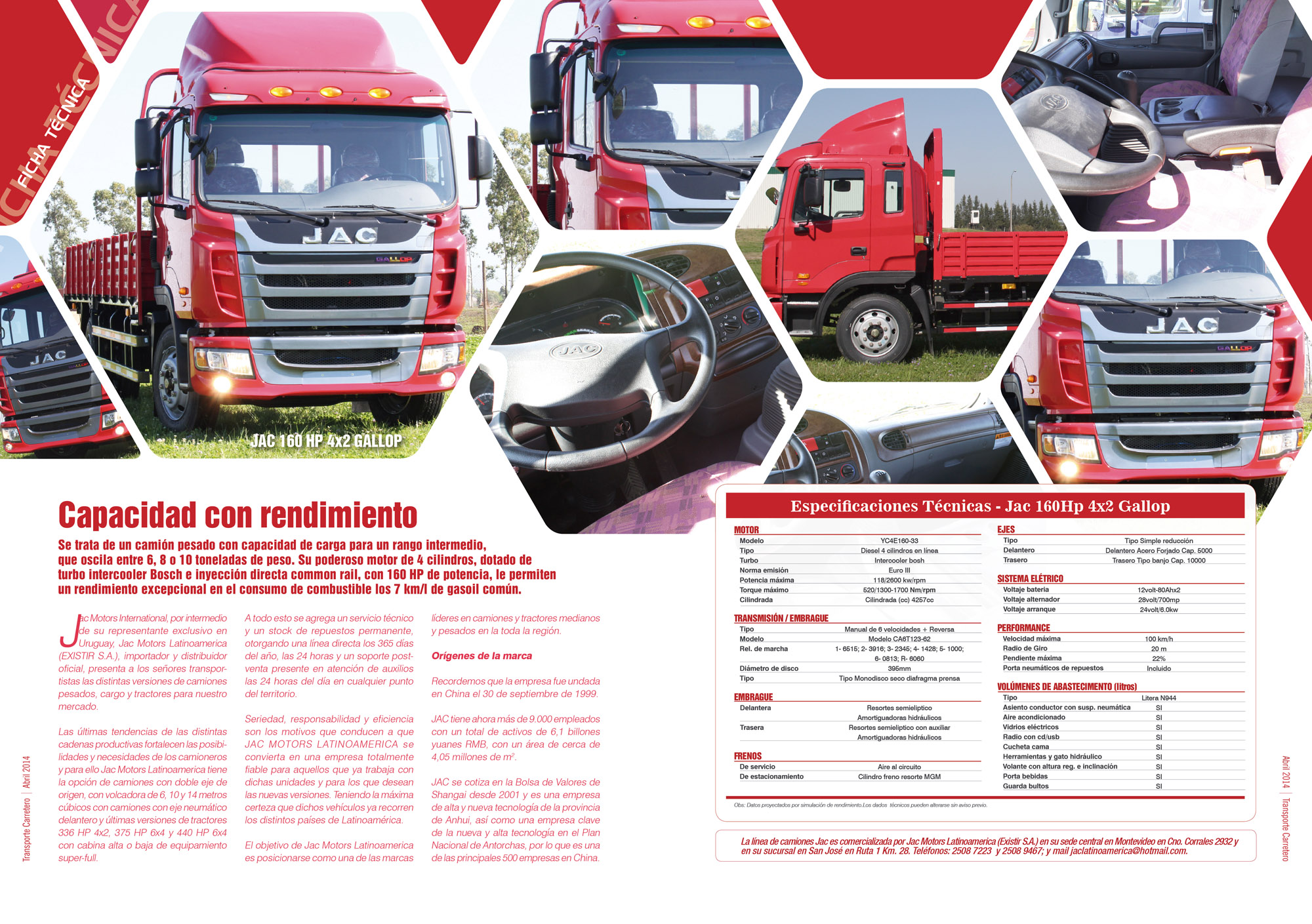 Jac Motors International, por intermedio de su representante exclusivo en Uruguay, Jac Motors Latinoamerica (EXISTIR S.A.), importador y distribuidor oficial, presenta a los señores transportistas las distintas versiones de camiones pesados, cargo y tractores para nuestro mercado.