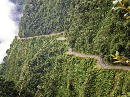 La Carretera de los Yungas es considerada por muchos como la más peligrosa del planeta y está ubicada en los andes bolivianos, a 70 km de La Paz hacia Coroico. Cubre unos 65 kilómetros y supera un desnivel de nada menos que 3.600 metros, partiendo desde los 4.300 metros de altura a los que se encuentra La Paz y está rodeada de profundos barrancos.