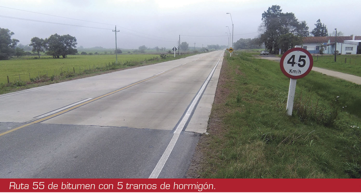 Ruta N° 55 (45 km en Colonia): Es una ruta recién reparada con un bitumen provisorio, que será mejorado y en general está bien, aunque se aprecian algunos deterioros a la altura de la intersección con la 21, pero que son reparados rápidamente, a causa del gran tránsito de equipos forestales que se dirigen a la Planta de Montes del Plata y de camiones de transporte de cereal que durante las zafras van a Nueva Palmira.