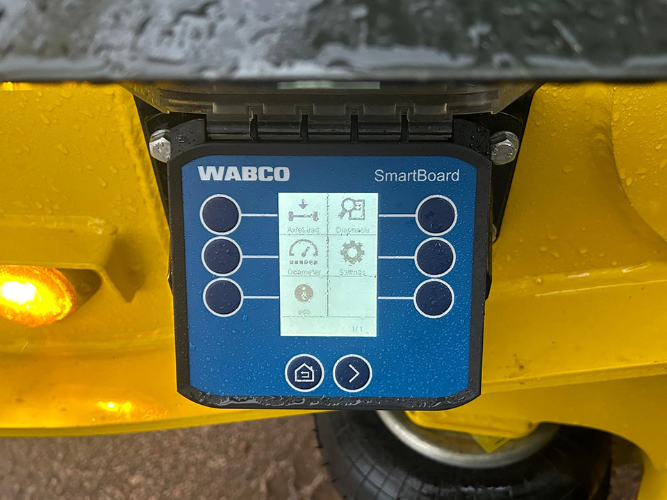 - Balanza Wabco Smart Board, con lectura de peso total y por eje, cuenta kilómetros, registro de frenado y control de estabilidad.