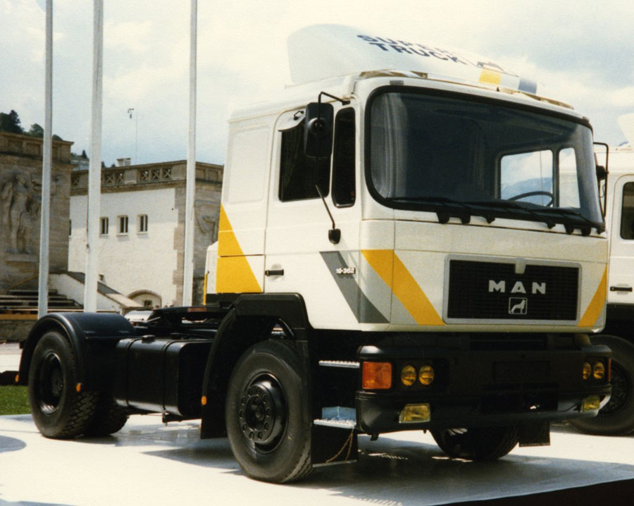 Los inicios se remontan a 1898, año en el que se fusionan las empresas Maschinenfabrik Augsburg y Eisengießerei und Maschinenfabrik Klett & Comp, formando Maschinenfabrik Augsburg-Nürnberg AG, en forma abreviada, M.A.N. Hacia 1908 ve la luz un logotipo de empresa, concebido por el dibujante y diseñador Lucian Bernhard y fuertemente impregnado de un estilo modernista. Con el transcurso del tiempo, el logotipo de MAN experimentó sucesivas modificaciones. Un rasgo típico que permanece hasta entrados los años 80 es la inscripción con los “tornillos” separando las letras: M.A.N