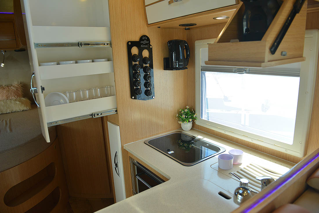 - Autosuficiencia: el Motorhome cuenta con todo lo necesario para satisfacer cualquier necesidad a bordo incluyendo la cocina, cama, agua, etc.