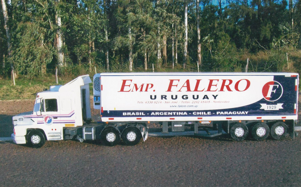 En Montevideo Transportes Vaz le encomendó la realización de un camión cisterna, un chofer del Grupo Marfrig le pidió un Volvo, Falero tiene dos generaciones de Scania, un 113 y un 380, y no faltan modelos como los Volkswagen Worker, los que también han pasado por sus habilidosas manos, como uno que realizó con jaula de ganado para la ciudad de Colonia Valdense o varios modelos forestales que están esparcidos por todo el país.