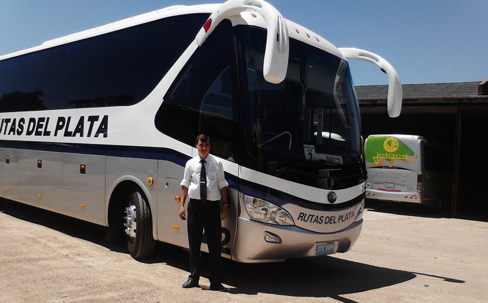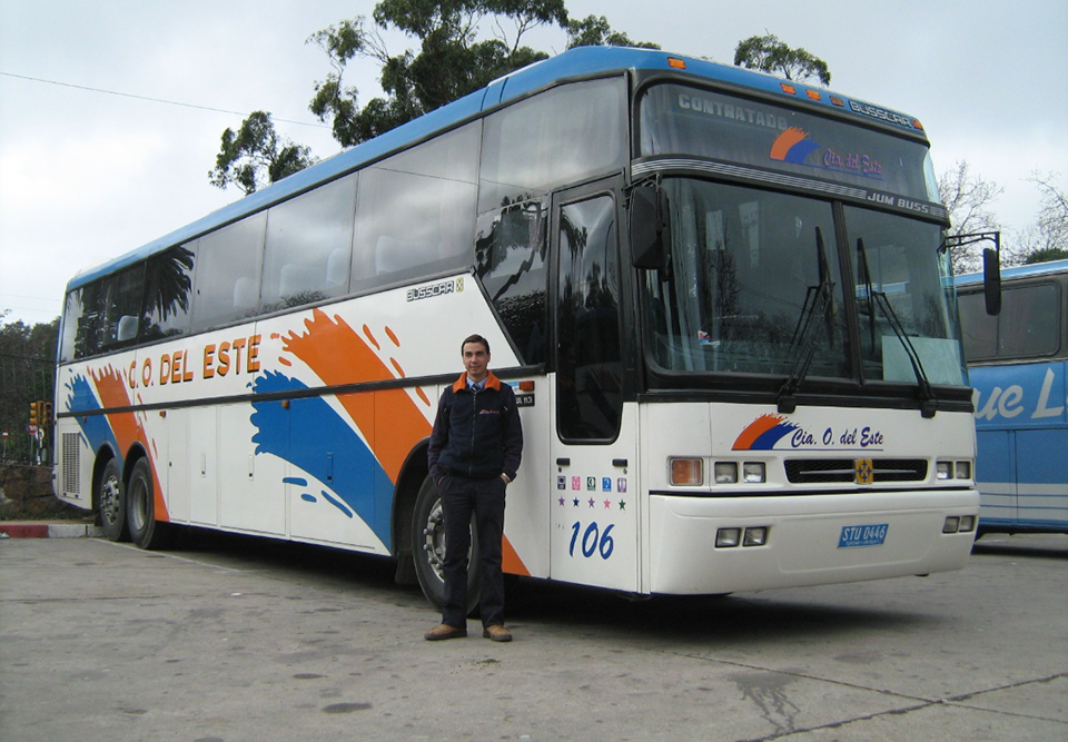 Desde hace un año y cuatro meses, ando en un Volvo con carrocería Busscar; si bien ahora hago la línea a Rio Branco, antes, cuando estaba el servicio entre Montevideo y La Charqueada, también hacía esa línea.