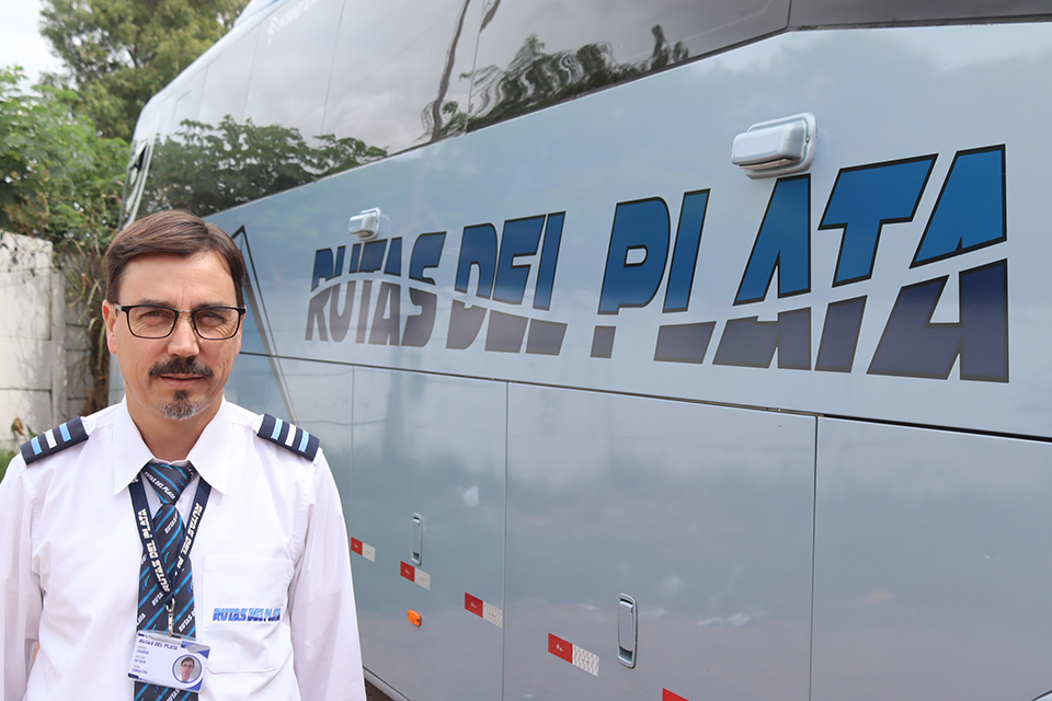 Si bien su profesión de base es la de mecánico tornero, en la cual se desempeñó durante 10 años, su pasión por el ómnibus pudo más. Antes de emprender uno de sus viajes, charlamos con el transportista sobre su trayectoria.