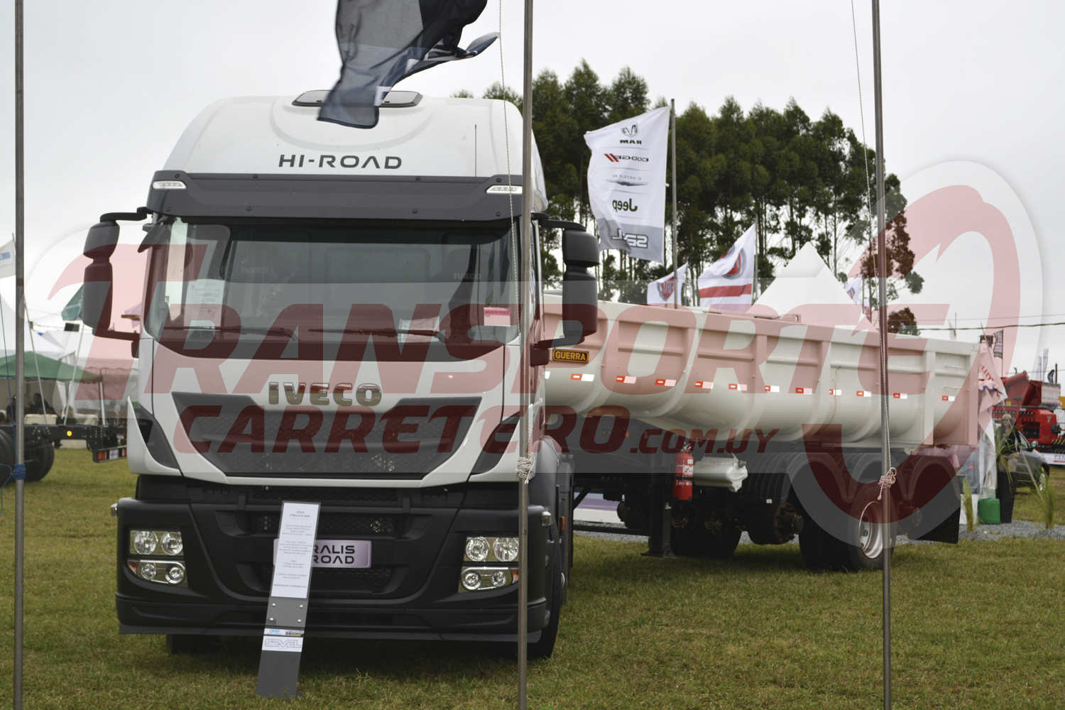 El representante de Iveco en Uruguay llevó a la muestra dos modelos: primero vimos el Eurocargo 180 E 28 de origen italiano en versión camión 4x2 que viene equipado con cabina dormitorio y flotante y entrega una potencia de 280 cv, pero que también se comercializa como tractor. El otro camión viene desde España y se trata del premiado Iveco Stralis Hi Way tractor con motor Cursor de 10.3 litros y 430 cv 6x2 y caja automatizada ZF.