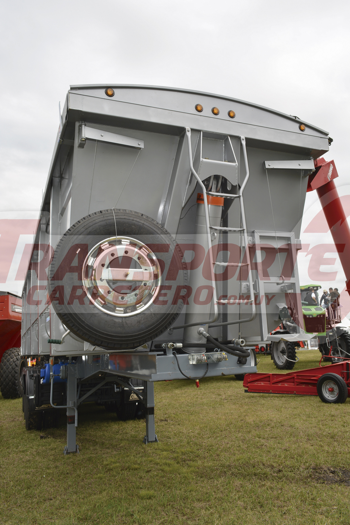 El equipo exhibido en el importante predio de la marca fue uno de tres ejes con llantas de aluminio, construido en acero microaleado MLC 420, sistema de frenos ABS, balanza electrónica integrada y luces led, entre otros detalles importantes.