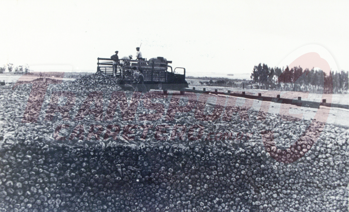 PREPARACIÓN Y MOLIENDA DE LA REMOLACHA: Las raíces que los agricultores entregaban al Ingenio se almacenaban en grandes silos a la intemperie denominados canales, desde los cuales iban siendo transportadas hacia la planta de procesamiento por medio de corrientes de agua. La raíz de la remolacha, ya en fábrica, era sometida a un proceso de lavado en varias fases en el que, con la utilización de agua, se eliminaban tierra, piedras, hojas y demás elementos extraños que la acompañan. Posteriormente la raíz caía en los dispositivos corta-raíces, donde era trozada en unas finas tiras denominadas “tallarín”. Las dimensiones de estas tiras eran importantes para obtener unos buenos resultados en la siguiente fase.