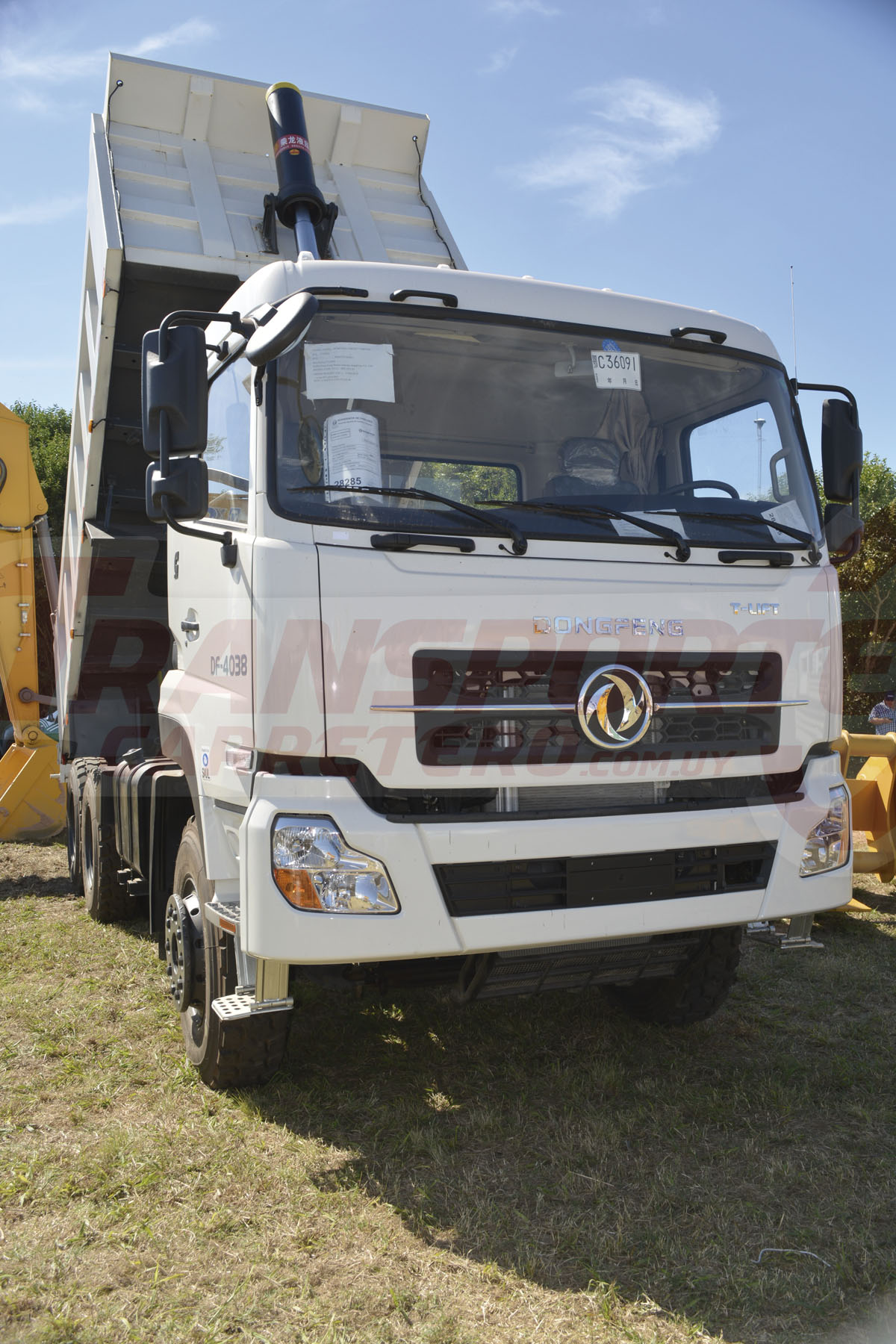 Otro de los vehículos presentados fue el camión pesado DF-4038, un modelo diseñado y armado especialmente para el trabajo “off-road”. El camión posee un poderoso motor de 6 cilindros Dongfeng Cummins ISLe375 30 de 380 HP/2.100 RPM que cumple con las normas Euro 3 y tiene una cilindrada de 8.9 litros, y cuenta con inyección electrónica con bomba de alta presión y common rail. La caja de cambios es una ZF de 16 velocidades hacia adelante y dos hacia atrás.