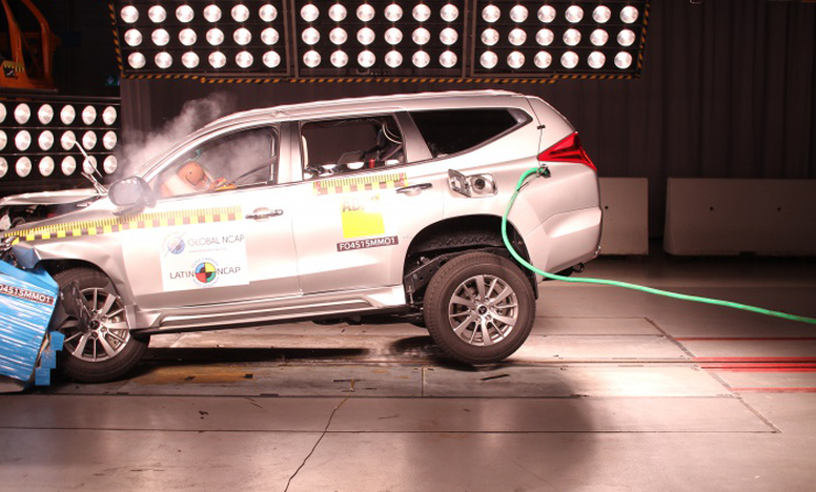 Mitsubishi Montero Sport, fabricada en Tailandia, recientemente lanzada en el mercado de América Latina, logró cinco estrellas para ocupante adulto y tres estrellas para ocupante infantil. El vehículo ofrece tres airbags como equipamiento básico que, en combinación con los cinturones de seguridad y pretensores, ofrecieron buena protección a los pasajeros. El niño de 18 meses recibió buena protección pero la cabeza del niño de tres años hizo contacto con el asiento del conductor causando pérdida de puntos. El respaldo del asiento trasero detrás del dummy de tres años se desenganchó durante la prueba. El vehículo ofrece anclajes ISOFIX en la segunda fila de asientos y cinturones de seguridad de tres puntas en todas las posiciones.