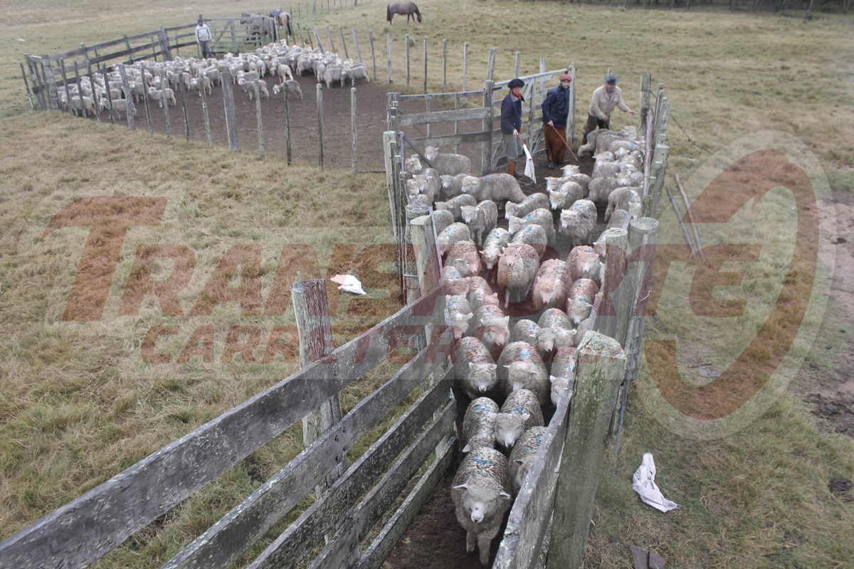 Inmediatamente, transportista y empleados del establecimiento, comienzan a trabajar en conjunto, separando los animales para ir contándolos. De a poco las ovejas van subiendo por la rampa colocada para que se introduzcan al camión, aunque la tarea se dificulta porque la lluvia se intensifica y los animales se resbalan. Varios son prácticamente alzados en las manos para que suban. Una vez se va llenando el piso superior, se lo termina de armar para colocar los demás animales en el de abajo.