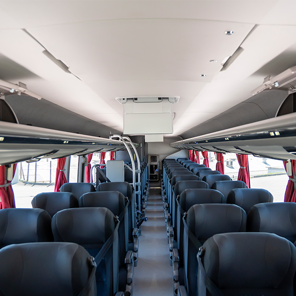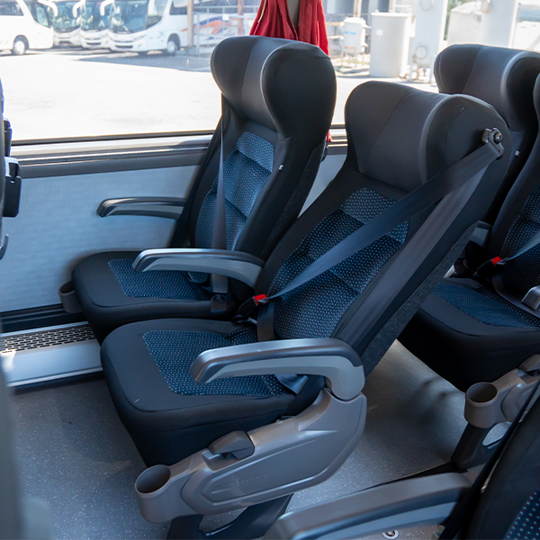 El autobús cuenta con 46 asientos ejecutivos, ascensor para accesibilidad, aire acondicionado para mantener un ambiente acogedor, 3 monitores LCD, USB para todos los asientos y faros full LED.