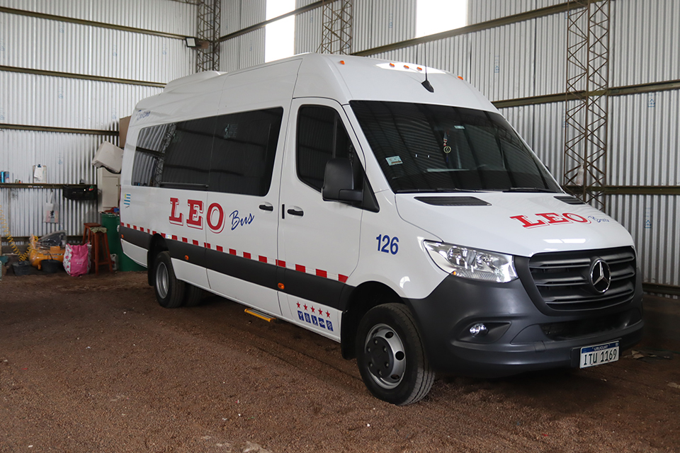 La empresa Leo Bus comienza en 2003. Al no tener trabajo, después de muchos años en el sector del transporte, en una empresa de ómnibus surgió la posibilidad de un traslado de personal y ahí le dimos comienzo. Al principio fue algo muy primario, pero de a poco fue tomando forma. La empresa Leo Bus es de la localidad de Quebracho, Paysandú; cuenta con tres ómnibus que están destinados al turismo, dos minibuses de 17 pasajeros también para el turismo, y otras tres camionetas destinadas a la parte interna, como transporte de estudiantes y de personal.