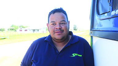 Marcos es el conductor del ómnibus que hace el servicio entre Salto y Quintana; desde hace 13 años recorre estos caminos y conoce al detalle los lugares y los pasajeros, con quienes ya tiene una relación de confianza.