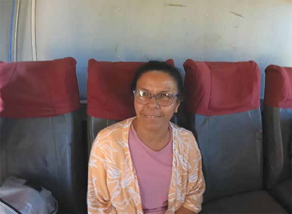 Sentada en la última fila de asientos del ómnibus, Zully lleva una caja que cuida con mucho cuidado para que no reciba golpes en los tramos más complicados del camino.