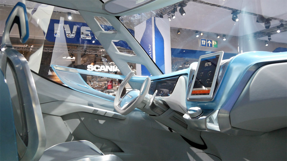 ‘Iveco Vision’ cuenta con una comunicación adaptativa entre el hombre y el vehículo a través de una tableta extraíble que se comunica con el sistema electrónico de a bordo, y un innovador sistema de gestión de la carga por sensores que identifica los paquetes para colocarlos de la forma más adecuada en el interior del vehículo. El objetivo es minimizar el esfuerzo del conductor durante el tiempo de trabajo, permitiéndole acceder de pie a la zona de carga y realizar las tareas con el máximo confort y ergonomía.