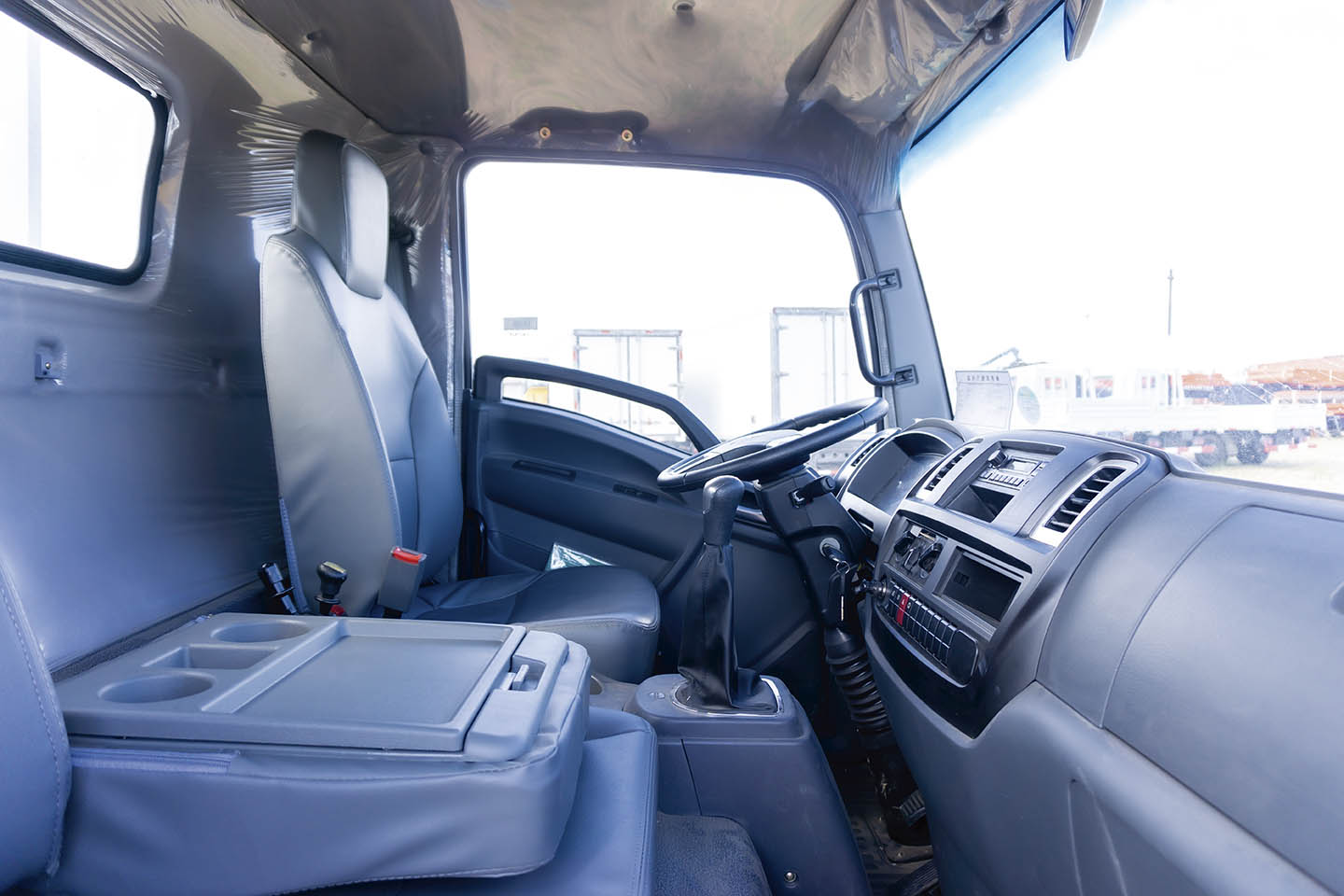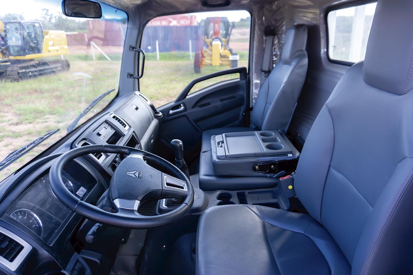 Una volcadora traída a medida. Equipo compacto y con buena capacidad de carga. Con motor Cummins 3.8-154 HP. Cabina abatible, amplia y confortable para el chofer. Cuenta con aire acondicionado, bloqueo central y vidrios eléctricos. Volcadora doble pistón con capacidad de 8.000 Kg o 4.3 M3.