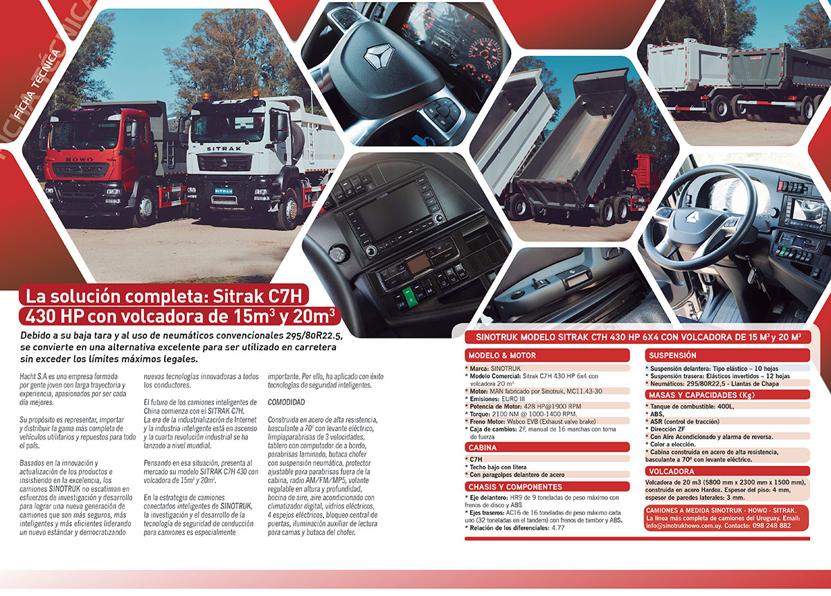 Pensando en esa situación, presenta al mercado su modelo SITRAK C7H 430 con volcadora de 15m3 y 20m3.