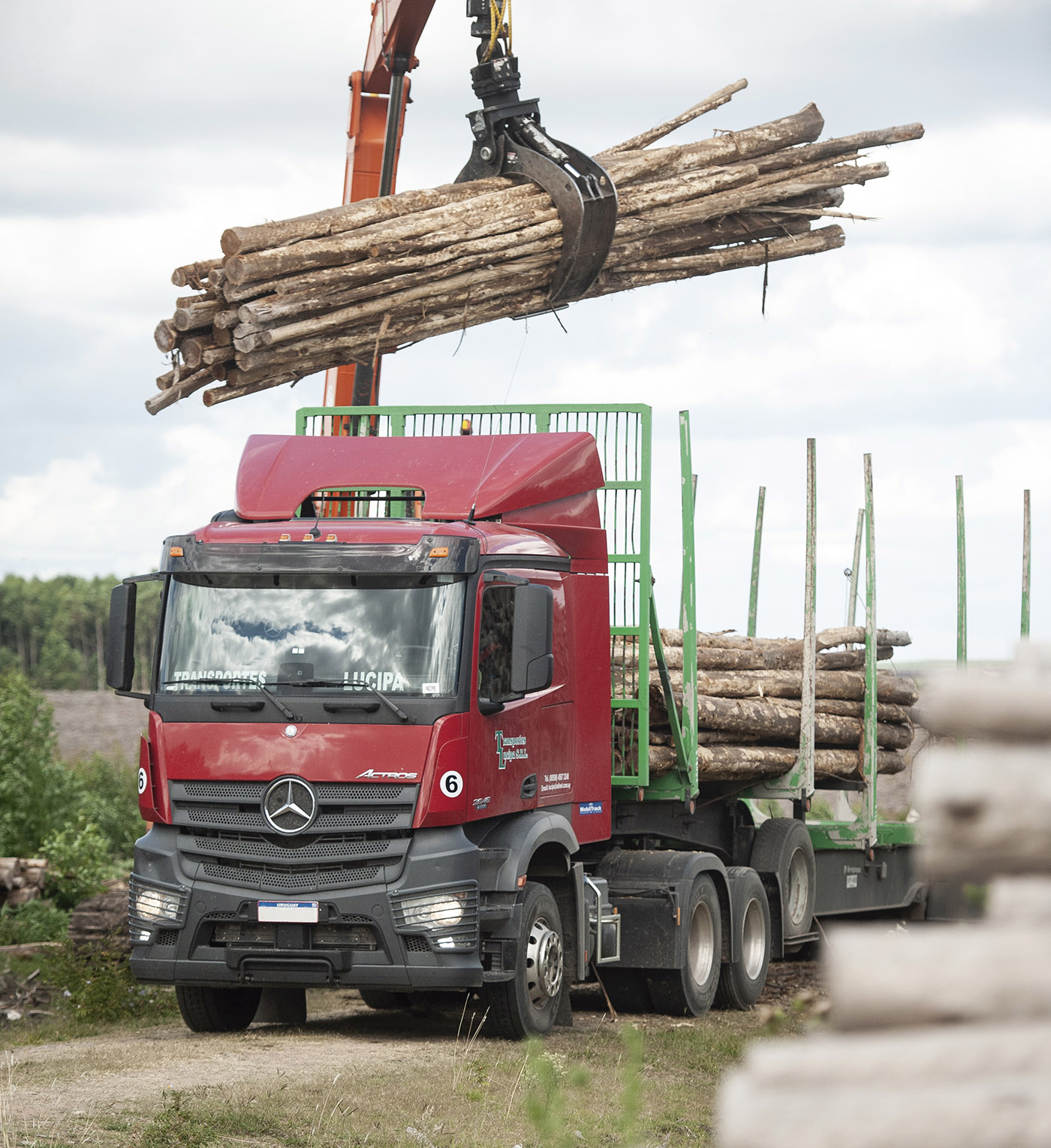 Con un diseño más elevado y robusto, el New Actros 2645 LS (6x2) de última generación está configurado para la aplicación forestal y carretera. Se trata del vehículo más eficiente del mercado en su segmento. Cuenta con la segunda generación de motores OM 471 de seis cilindros en línea inyección Common Rail, a los que suma 13 litros de capacidad y un riguroso cumplimiento de la normativa de emisión de gases Euro V. En la misma línea, dispone de un exclusivo sistema de inyección Mercedes-Benz XPulse. Su turbocompresor asimétrico implica una verdadera revolución para los estándares de consumo y costos operativos en transporte profesional extra pesado.