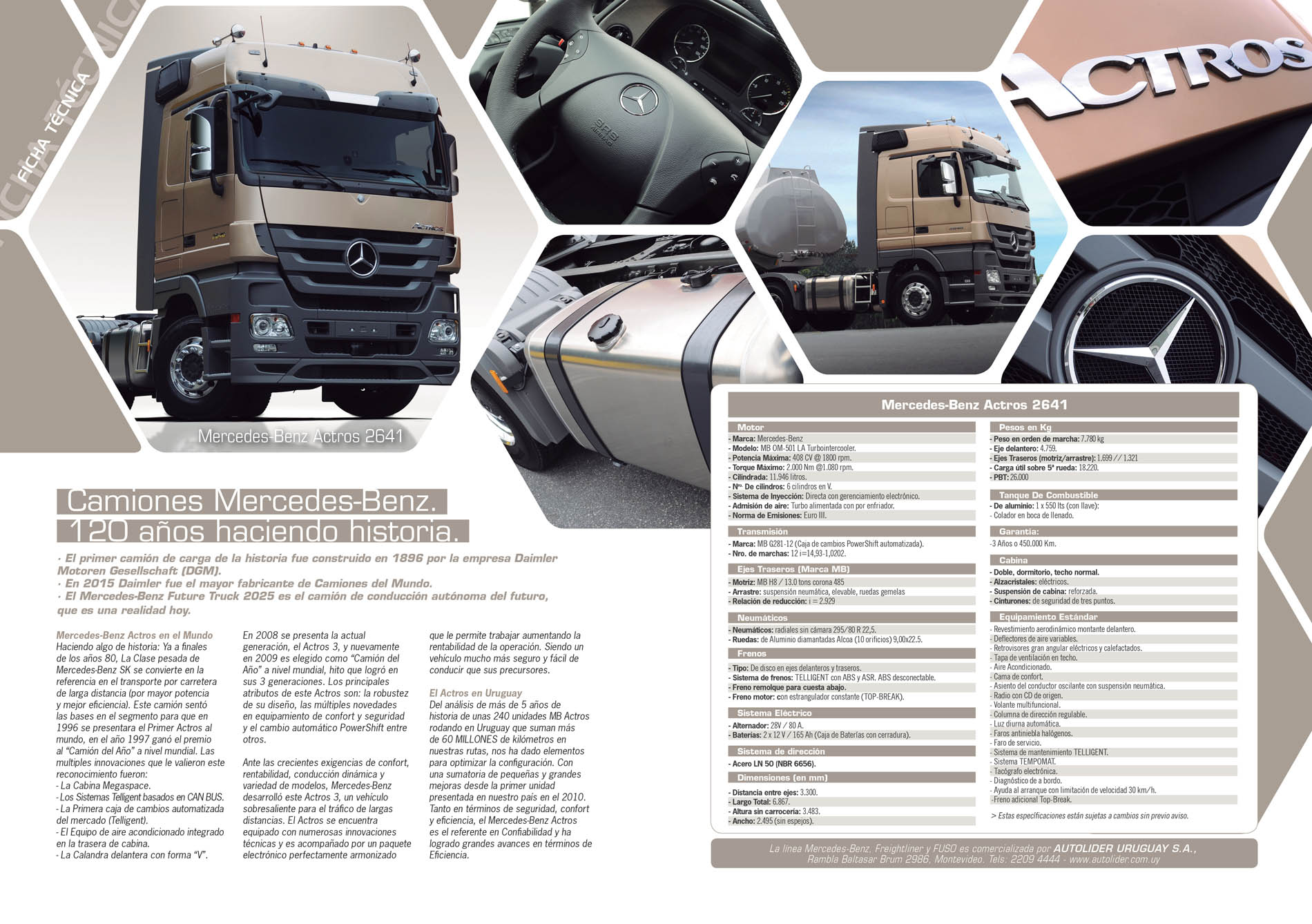 Del análisis de más de 5 años de historia de unas 240 unidades MB Actros rodando en Uruguay que suman más de 60 MILLONES de kilómetros en nuestras rutas, nos ha dado elementos para optimizar la configuración. Con una sumatoria de pequeñas y grandes mejoras desde la primer unidad presentada en nuestro país en el 2010. Tanto en términos de seguridad, confort y eficiencia, el Mercedes-Benz Actros es el referente en Confiabilidad y ha logrado grandes avances en términos de Eficiencia.