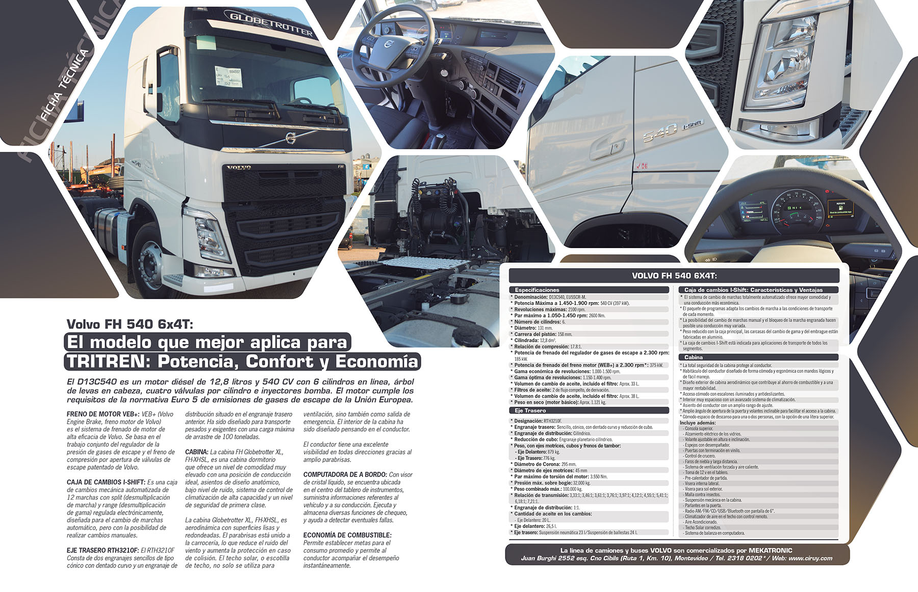 FICHA TÉCNICA: Volvo FH 540 6x4T - El modelo que mejor aplica para TRITREN: Potencia, Confort y Economía