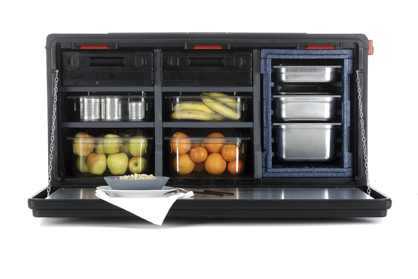 Usado para almacenar de forma pulcra el equipo ADR, los elementos para fijar la carga, herramientas o toldos, las aplicaciones Kompos-it incluyen hasta una cocina de viaje con su propia unidad isotérmica, plano de trabajo en aluminio e iluminación con LED. Además, cada accesorio o parte del sistema ha sido diseñado para para ser enviado desarmado, siguiendo el hilo conductor de todo el programa del producto, evidencia de la continua responsabilidad empresarial que el Grupo Lago mantiene en la práctica de diseño, fabricación y operaciones.