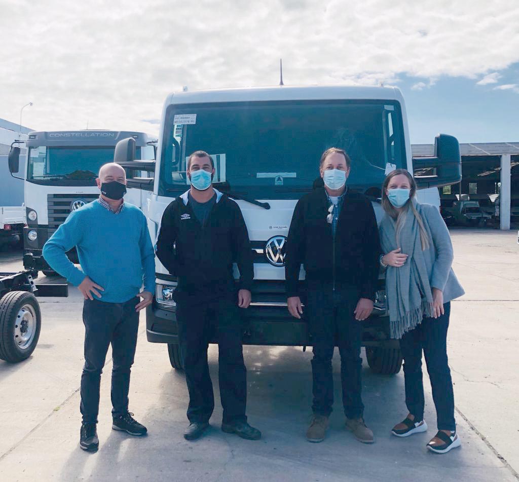 Granja La Magnolia adquirió un nuevo VW Delivery 11.180. En la fotografía Eduardo Gutiérrez recibe la unidad de Melisa Acevedo de Automotora Acevedo.