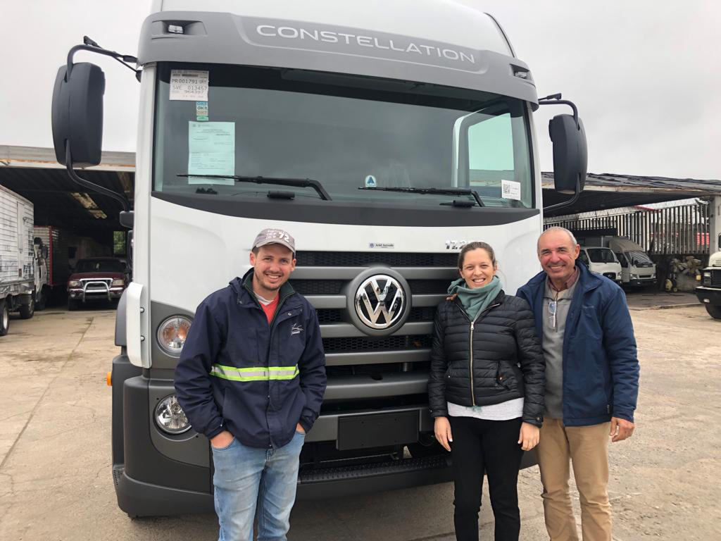 La empresa Juan Vero recibió una unidad VW Constellation 17-250. Melisa Acevedo de Automotora Acevedo entregó la unidad a Juan Vero e Ignacio Vero.