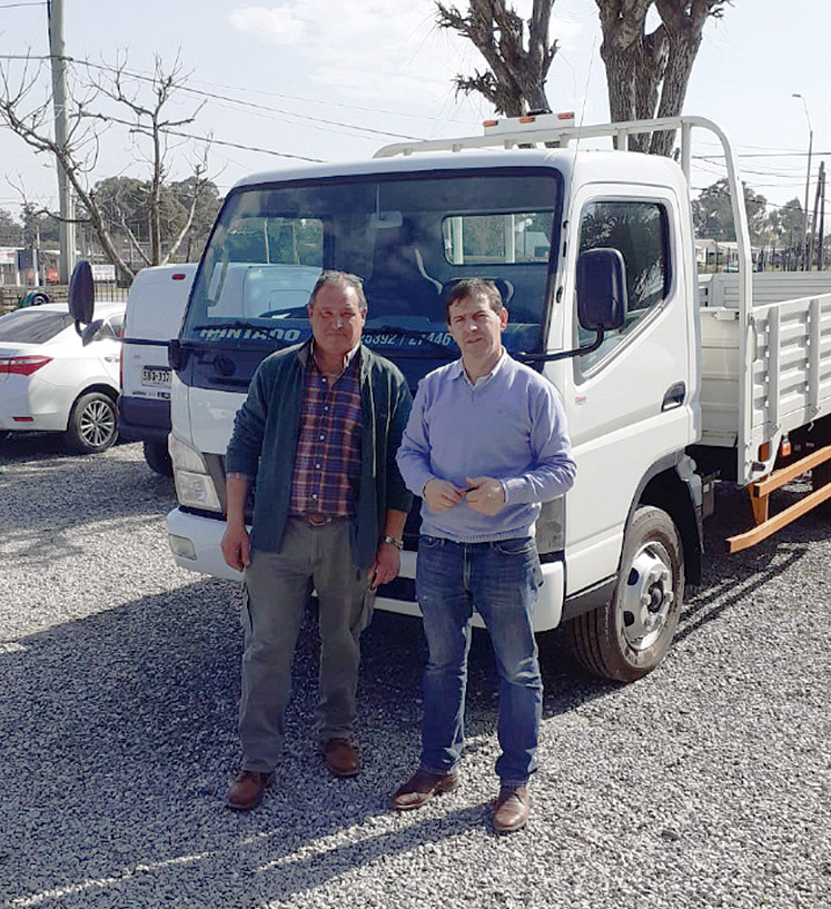 La Automotora H. Pintado vendió un camión Fuso 0 km a la empresa Miranda de Rocha. En la fotografía, Pedro Santos entregó la unidad a personal de la firma.