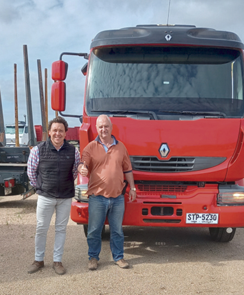Roberto Budes junto a Diego Pisano de la empresa Mariela Alvez, quien adquirió en Automotora H. Pintado sucursal Ruta 5 un Renault Midlum 300 con volcadora.