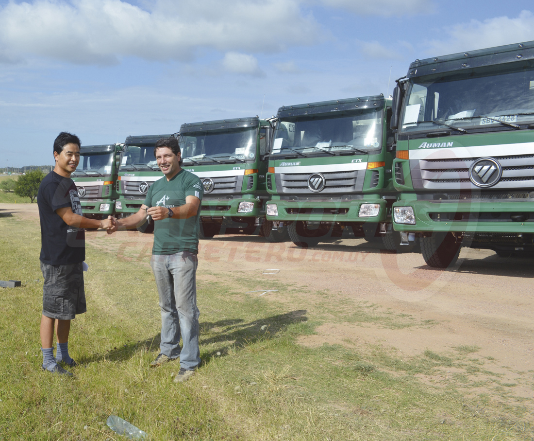 Jie Wang, Vicepresidente del Departamento de Servicios de Foton Daimler Automotive Uruguay, entregó a Carlos Sosa de Hormigones Artigas S.A. las llaves de 6 unidades Auman ETX con mixer Foton Loxa.
