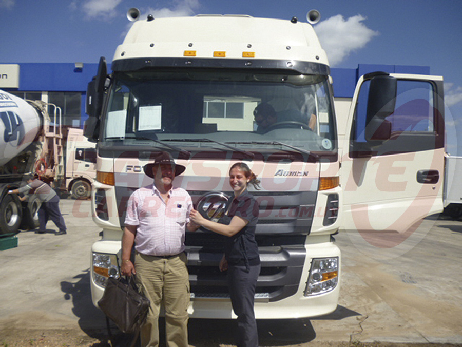 La empresa Los Transportes de Florida recibió una nueva unidad Auman. En la fotografía Antonella Acerbi de Foton Daimler Automotive (Uruguay)entrega las llaves a Héctor Calandria, propietario de la empresa.