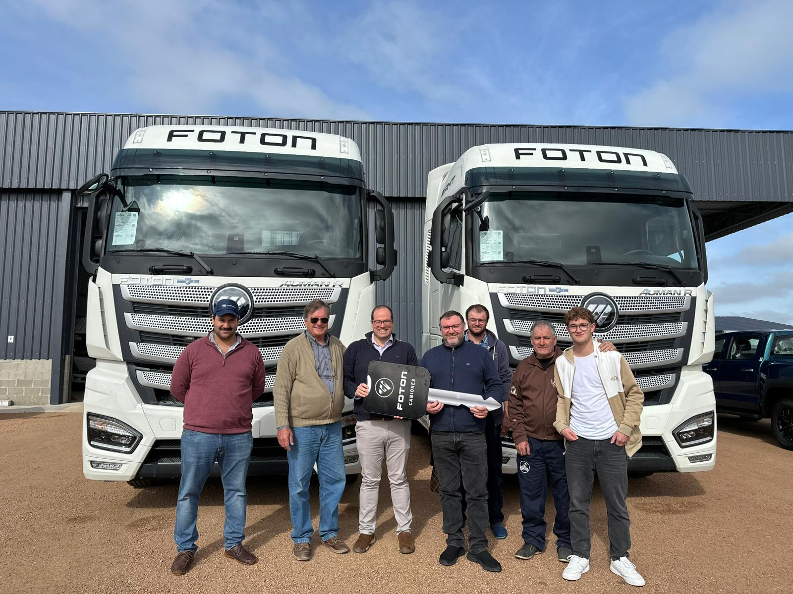 Mathias Etcheverry y Marcelo Villanueva de HDL, junto con Juan José Passadore de Createk, realizaron la entrega de camiones AUMAN R 2546 High Roof a Enrique Rolando, Jorge Pérez, Ariel López y Nicolás Pérez de ROLANDO S.A.