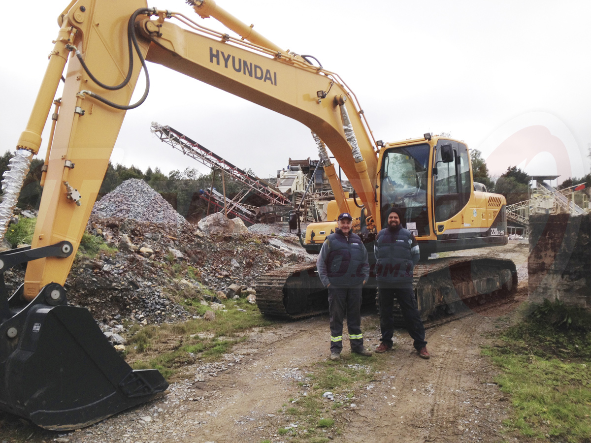 Hyundai Fidocar S.A. entregó a la firma minuana CYCUSA (Canteras y Caleras Unidas S.A.) una Excavadora de 22 toneladas R220LC-9S con Motor CUMMINS 5.9 e inyección convencional. Al momento de la entrega, Hugo Torterolo, encargado de cantera, y Guillermo García, mecánico de Hyundai Equipos Pesados.