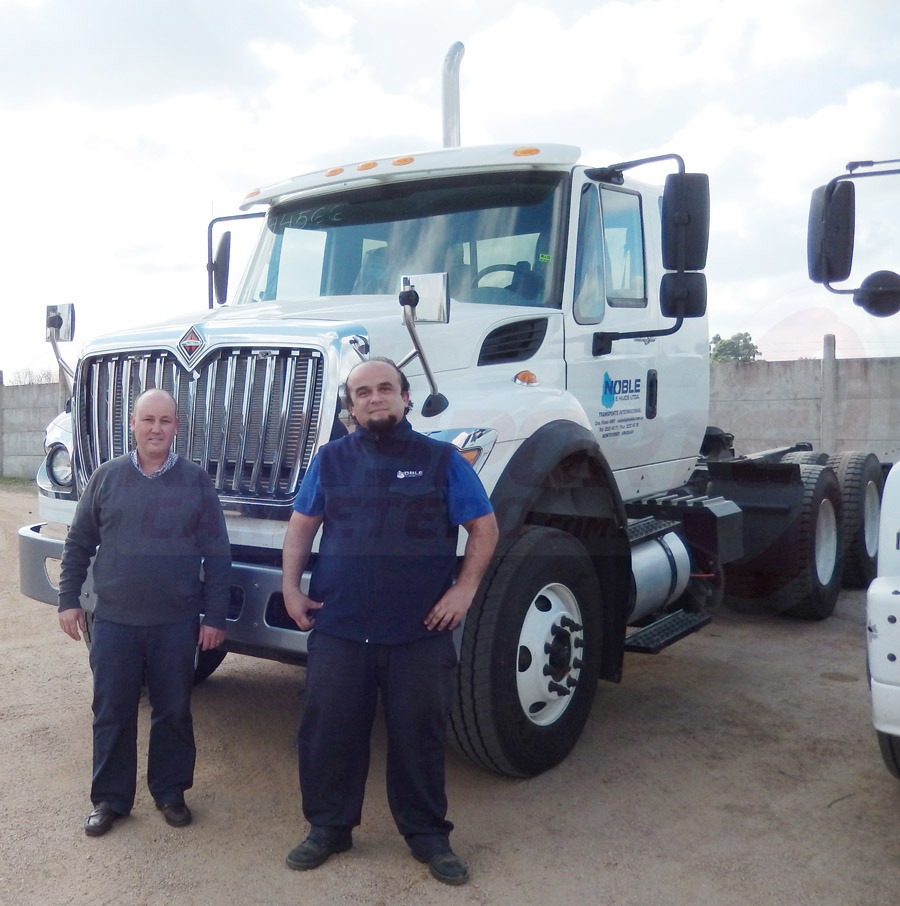 International de Uruguay hizo entrega de un nuevo camión tractor 7600 SBA 6x4 a la firma Noble e Hijos Ltda. En la foto: Eber Pesugni, vendedor de International de Uruguay, y Manuel Noble, Director de Noble e Hijos Ltda. (der.).
