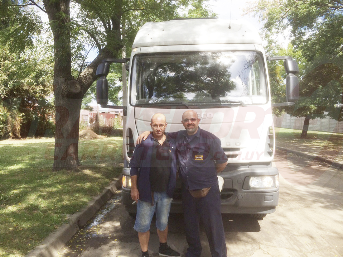 La firma Gusmar Transportes adquirió una nueva unidad IVECO, en esta oportunidad un Eurocargo 180E28 6x2 origen europeo. En la imagen, Marcelo y Adrian Tissierre.