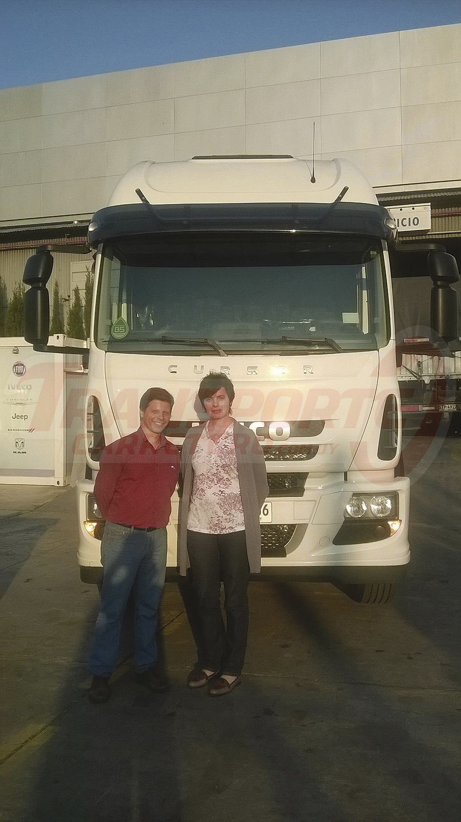 La firma M y N SRL recibió la entrega de otra nueva unidad Iveco Cursor 330cv. En la fotografía Mario Fernández de Sevel Uruguay S.A. y Adriana Revello de M y N SRL.