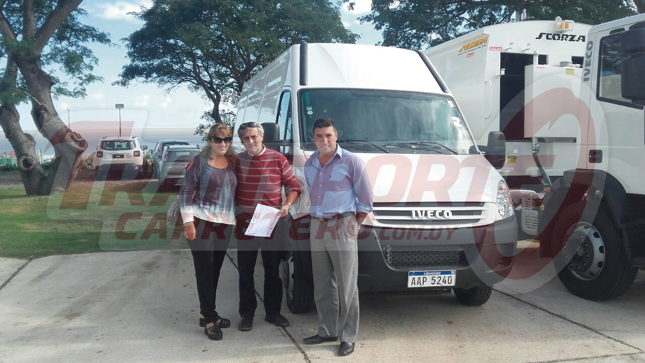 IVECO_Luego de 10 años de experiencia con la marca, Miguel Bertorelli adquiere nuevamente un IVECO DAILY 55C16 Furgón de 15,6m3. En la foto Marcos Amaral (Sevel Uruguay S.A.) hace entrega de la unidad.