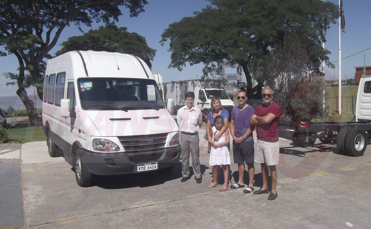 IVECO_Sevel Uruguay S.A. hace entrega de un Minibus IVECO Power Daily A39.13 para el transporte de escolares en la Ciudad de Mercedes. En la foto: Mario Fernández (Sevel Uruguay s.a.), Paula Gallegos, Oriana, Fernando y Miguel Álvarez.