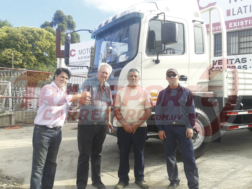JAC: Jac Motors Latinoamerica (EXISTIR S.A) entrega 2 camiones Jac 190hp 4x2 a la empresa Stiler S.A. gracias a la recomendación de su alto rendimiento de 5km/l y su gran confort. En la foto: Marcelo Armoa (Gerente de repuestos) entregando la llave al ingeniero de Stiler S.A. con sus 2 (choferes).