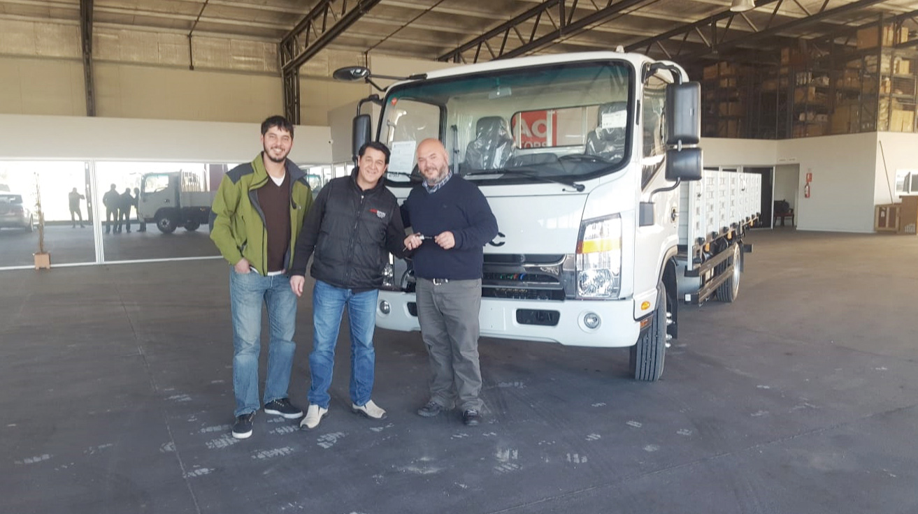 JAC Latinomarica (EXISTIR S.A) entrega el camión JAC 1063 para Sauce, Canelones. Claudio Regazzo y Marcos Regazzo recibieron las llaves de mano de Marcelo Armoa (Gerente de repuestos).