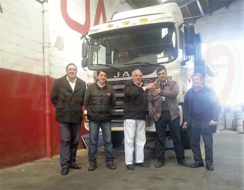 Jac Motors Latinoamerica (EXISTIR S.A) Uruguay entregó el JAC 190 HP Gallop 4x2 Volcadora de 10m2 a la Intendencia de Montevideo. En la foto: Jesús Pintos, Marcelo Armoa (Gerente de Repuestos), Bubi Lebed (Presidente), Daniel Palermo y Gabriel Castellis del Mercado Modelo.