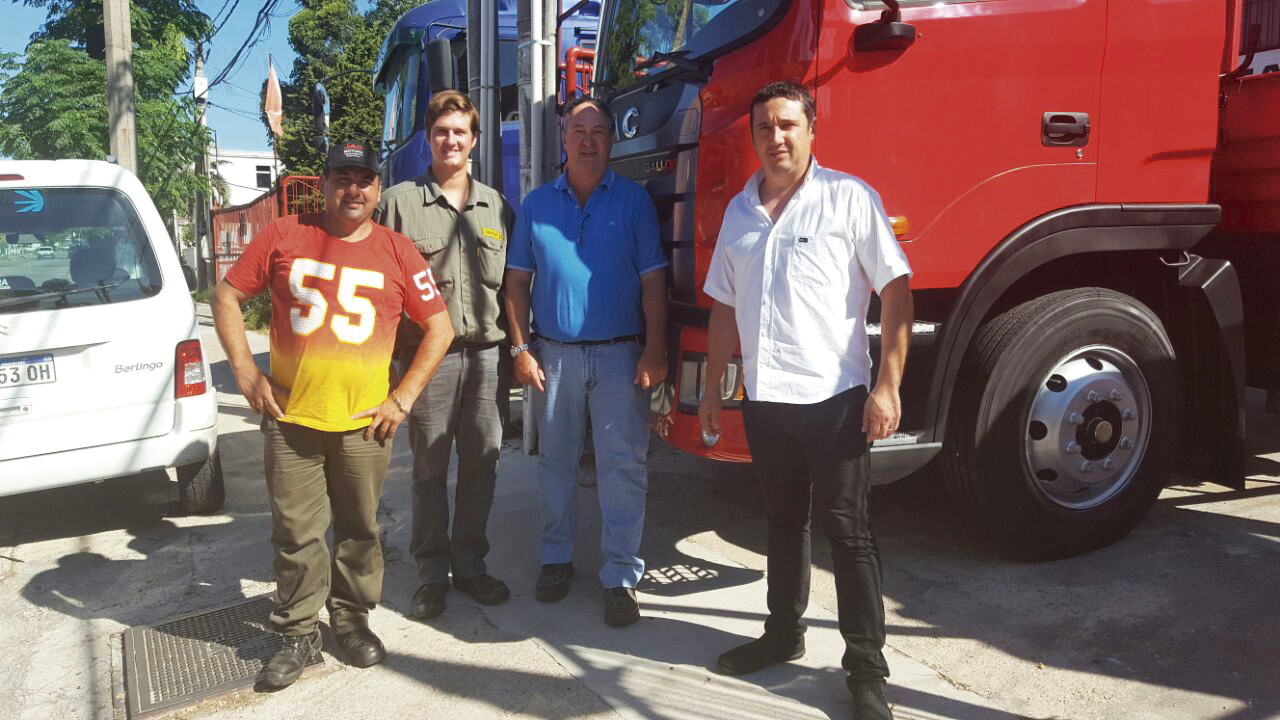 JAC Latinoamerica (EXISTIR S.A) entregó el camión JAC 160 HP Gallop 4x2 a la empresa Taceo S.A de Paysandú. Al momento de la entrega Gerardo Echave (Administrador) junto a Víctor Hugo Verger, Gianfranco Verger y su chofer.