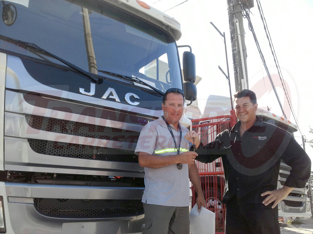 JAC Motors Latinoamrica (EXISTIR S.A) URUGUAY entregó a la empresa Trancigliuti S.R.L el camión Jac 160 Hp Gallop 4x2. En la foto tenemos a Marcelo Armoa (Gerente de Repuestos) y Pablo Natale (propietario).