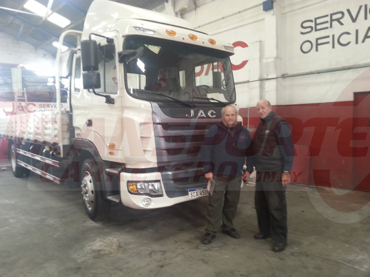 Jac Motors Latinoamérica (Existir S.A) Uruguay entregó su nuevo modelo JAC 160 HP Gallop 4x2 a Voltios S.R.L. En la imagen tenemos a Hugo Cabrera entregando las llaves a Andrés Cruz.