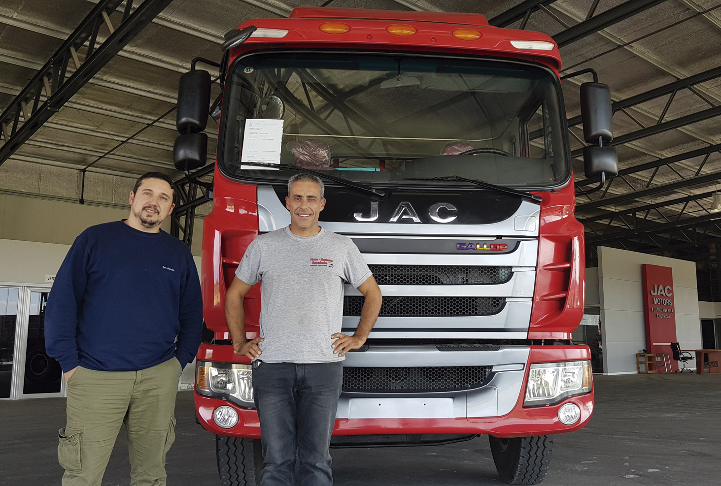 Gerardo Echave de Administración, Ventas y Leasing de JAC Latinomerica (EXISTIR S.A.) entregó el camión JAC 190 HP GALLOP a Willy Pontet de Mercedes, Soriano.